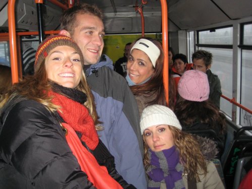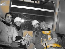 La siguiente parada era pillar papeo para cenar y desayunar, y ya de paso tomarnos alguna cervecita… lugar de encuentro nada mejor que un supermercado para tomarnos las cervezas y reirnos un poco bastante, mientras los vieneses nos miraban de una forma no muy agradable…la verdad es que la liamos bastante…y ellos no deben estar acostumbrados al tono de voz de los españoles, un poco alto… Total que allí nos bebimos nuestras birras calentitos y organizamos el resto del día. Teníamos que ir a buscar las mochilas del resto de la trupe que las habían dejado en las taquillas de una estación, ahora no recuerdo cual. Cuando tuvimos todas las maletas, hicimos nuestra ruta maratoniana ( metro y bus…by the face) y el tema de conversación era como entrar en el hotel sin levantar sospechas… en lugar de una habitación para dos y una peque, nos íbamos a meter 8 personas + la peque, cada una con su maleta… como veréis era un poco complicado así que en el trayecto ideamos varios planes… como ir subiendo poco a poco como si lleváramos allí toda la vida. Santi no dejaba de manifestar su idea que el hotel era un poco raro, ya que el día anterior solo había visto gente con problemas, yo le decía que no podía ser pero debían de ser un cole de personas especiales, para Chema y Saul, (Retromongos) que estaban pasando allí la nochevieja. Y es así como entramos primero con disimulo, de uno en uno pero al final los últimos del tirón y nos acoplamos como pudimos en las 4 literas. Y tengo que decir que estuvimos de pm solo había un baño pero bueno organizándonos no hubo ningún problema y Leyre se adaptó de maravilla, es más creo que estaba encantada de tanta gente…
