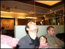 El tiempo se nos echaba encima, bueno más bien el día ya que a las 4 de la tarde aquí era como si fueran las 10 de la noche. Así que decidimos ir a comer algo, de bajo presupuesto eso sí, porque si hay algo que caracteriza a los diamantinos es que menos es más (véase equipaje de Manolo, con la maleta enorme, versus equipaje de Chemone, mochila de mano), y aunque no estemos muy de acuerdo Mc Donalds siempre es una opción económica así que allí fuimos a calentarnos un poquillo y llenar la tripa. Allí estuvimos hasta que literalmente nos echaron… jajaja hay que tener en cuenta que era fin de año y a las 5 o así chaparon, aunque en mi modestia opinión también tuvo algo que ver las payasadas que llegamos a hacer… Chemone ejerciendo de buen padrino…y Leyre flipándolo…