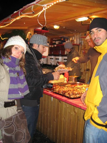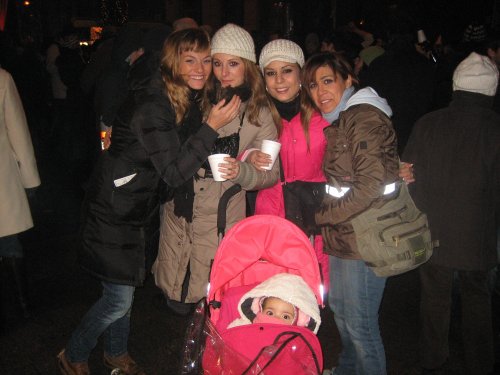 El STEPHANSPLATZS estaba imposible… una de peña que vamos no cabía ni un alfiler… impresionante de verdad… El ruido ensordecedor de los petarnos, gente de arriba para abajo y corriendo en todas direcciones ya que los petardos se tiran a matar… es decir a dar a la gente… Leyre no estaba muy convencida y todo el rato decía que no con la cabeza…la protegimos con la braga, el gorro y luego le pillamos unas orejeras de la kitti, que nos tuvieron que abrir la tienda después de varios ruegos…pero lo conseguimos!!!! Fue muy grande al igual que la castaña… pero de verdad para mi una pasada uno de mis mejores fin de año.