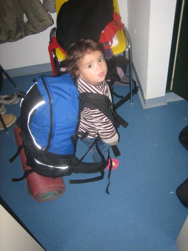 Leyre iniciándose como diamantina…aunque aún le queda mucho por recorrer…ya lleva más países que algunos, recordemos su incio en Islandia… Camino al meollo de la fiesta y atención al detalle de las zapatillas goretex improvisado…jajaj
