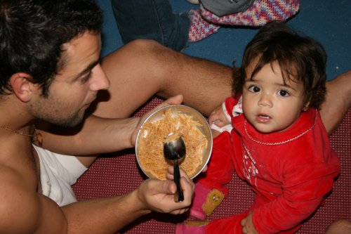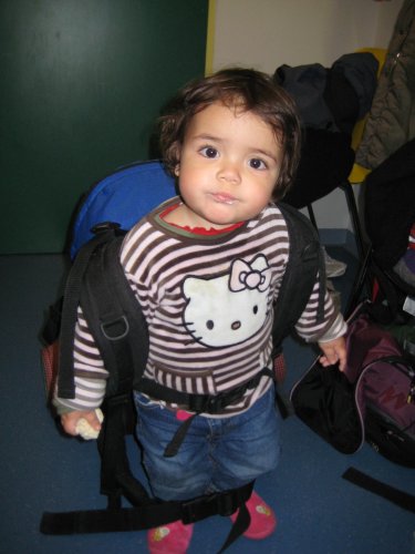 un par de horas o tres en decidirse pero salieron a conocer Viena la Nuit… Las chicas decidimos quedarnos pues el frío era un factor en contra importante… así como que yo desde que soy mami, las prioridades van cambiando… Total que salieron los chicos y las chicas nos quedamos calentitas en nuestros saquitos y con la calefa a toda pastilla. Solo tenemos una prueba fotográfica de esa noche, pero el resto lo viví al día siguiente, pues cabe decir que Santiago ya tiene una edad y parece no aceptarlo…. Volvieron como volvieron… y Santi echó hasta el higadillo quedándose jodido para el resto del viaje…(30 tacos no perdonan) DIA 30: La primera en despertar es Leyre que no entiende de vacaciones ni de fiestas, sino que ella quiere su bibe de cereales y punto como cada mañana a las 9.
