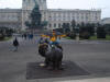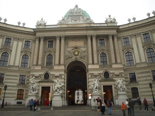 Iniciamos nuestro paseo por el centro visitando la STAATSOPER, es decir, el Teatro de la Ópera estatal. Cada año en febrero se celebra el baile de la Ópera, donde los caballeros deben vestir frac y las señoras traje largo de noche. Allí fuimos testigos de primera línea de un accidente en pleno directo entre la policía y un turismo. Se armó una muy grande…sentimos la ostia dentro de cada uno. También pasamos por el KUNSTHISTORISCHES MUSEUM ( Museo de Historia del Arte), donde se encuentra la colección de arte reunida por los Habsburgo durante varios siglos. También visitamos el PALMENHAUS, el antiguo invernadero imperial que acoge un restaurante y el SCHMETTERLINGHAUS, la casa de las mariposas, que vuelan entre una exuberante vegetación tropical. Esta es la MICHAELERTOR, en la época de los Habsburgo entrada principal alconjunto de Hofburg. Seguimos nuestra ruta por una de las principales calles de Viena, adornada con las típicas luces impresionantes de navidad. También está llena de puestecillos donde se venden pequeños monigotes y cerditos, según los cuales dan buena suerte para el año nuevo. Como no, Berta, Pili y yo nos animamos y compramos varios… De camino a la catedral pasamos por la PESTSÄULE, la Columna de la Peste, que no tiene nada que ver con nuestro queridísimo amigo Saúl aunque…. No se yo… que fue eregida para agradecer a Dios el fin de la epidemia que causó más de 75.000 muertes. Así llegamos a la STEHANSDOM o Catedral de San Esteban, entramos ya que la entrada es gratuita. Es una catedral gótica y el tejado está recubierto por tejas esmaltadas polícromas. Allí Saúl y Chema se tomaron un típico vino calentito con sabor a canela que con el frío que hacía sentaba de maravilla… o tal vez fueron 2??