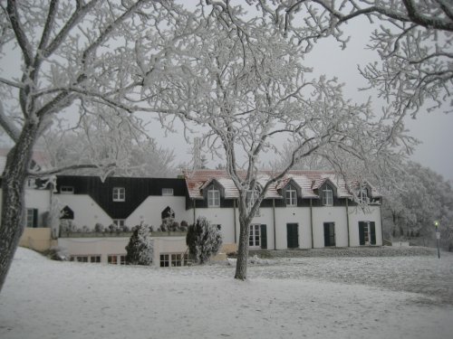 Después la opción es ir al Hotel, que aunque no está muy céntrico (pero sí bien comunicado) nos ha salido por 4 duros. Cogemos el metro y después el autobús, en un total de 1 hora más o menos hemos llegado. Por cierto, el primer viaje lo pagamos pero en todos los días siguientes el transporte en general fué “by the face”, ya que en el metro no hay que pasar por ningún dispositivo, sino que tienes que picar el ticket y pasar y en el bus tres cuartas partes de lo mismo (para nota: en los buses se entra por detrás????jajaja) Nos bajamos en la parada situada a las afueras de Viena, todo lleno de un inmenso bosque nevado y nos quedamos boquiabiertos (no por el frío que también…) ya que el hotel que teníamos delante era un pedazo de mansión de por lo menos 6*, pero claro… ese no era el nuestro…pero estaba justo al lado. Después de dar unas cuantas vueltas lo encontramos. Nos dan la llave y los tickets del desayuno.