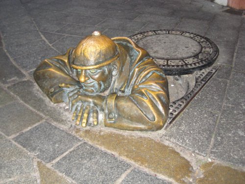 congelados era poco… Bratislava es la capital y mayor ciudad de Eslovaquia y está situada a orillas del Danubio, cerca de las fronteras con Austria y Hungría. Se encuentra a unos 60 km de Viena, lo que convierte a estas ciudades en las capitales de país más cercanas una de otra de todo el mundo. El Ayuntamiento Antiguo se encuentra en la Plaza Principal, exactamente en el corazón del núcleo histórico de la ciudad, y gracias a su torre forma parte de los edificios dominantes de la ciudad. Desde ahí se dirigió durante 500 años la vida de la ciudad. Las cuatro curiosas estatuas que adornan el casco antiguo de Bratislava, son bastante recientes, pero proporcionan una serie de datos interesantes sobre la historia de la ciudad Un soldado del ejército de Napoleón: En uno de los bancos de la Plaza Mayor, junto a la actual embajada francesa, podemos encontrar la estatua de un soldado de Napoleón. El mismo soldado nos recuerda a Napoleón con su pintoresco sombrero. Napoleón pasó en varias ocasiones por la ciudad, la primera de ellas en 1805, pero fue en 1809 cuando su ejército destruyó el cercano castillo de Devin. Tanto los habitantes de la ciudad como aquéllos que la visitan un par de días disfrutan haciendo un alto en el camino, sentándose en el banco junto a este soldado. Cumil: A pesar de ser uno de los personajes más famosos de la ciudad, sólo lleva seis anos en sus calles. La estatua representa a un obrero descansando mientras echa un vistazo a las calles repletas de gente paseando. Es sin duda la estatua favorita de todos los niños, los cuales disfrutan sentándose en su cabeza o haciéndose fotos junto a él. Su nombre se forma a partir del verbo "cumit", que en eslovaco significa algo así como "cotillear". Las malas lenguas afirman que Cumil se dedica a observar las faldas de las turistas.