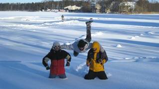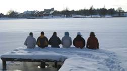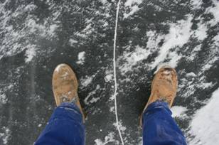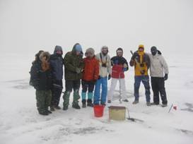 helado, y desde la orilla, y a pesar de la fuerte ventisca que hacia, se