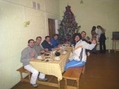 con el grupo de rusos comiendo, a cada cual más terrorífico, en especial