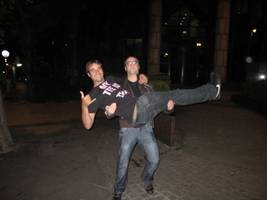 nuestras Tuborg en unas escaleras hasta que ChemaTibco dio por finiquitado el