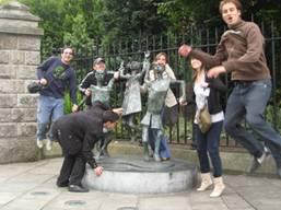 famosa calle comercial Grafton Street, esta calle comienza con la famosa estatua