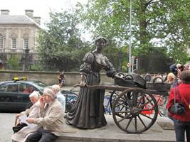 de bronce Molly Malone. La calle estaba llena de gente y de artistas callejeros,