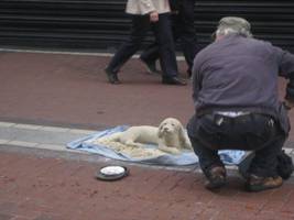 bullicio de gente que echaban dinero sin parar y ovacionar a un mini perro de