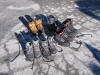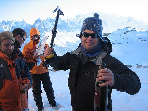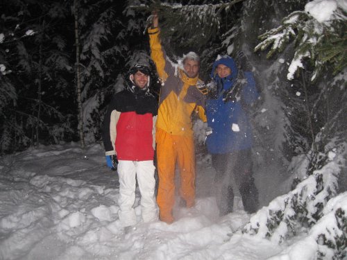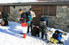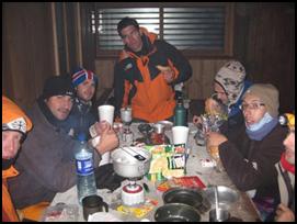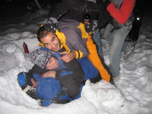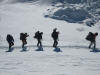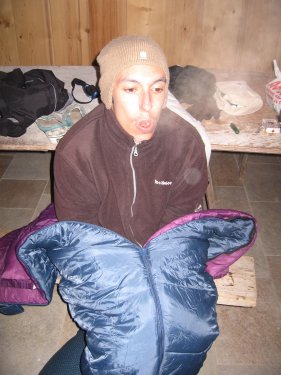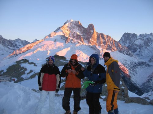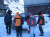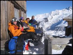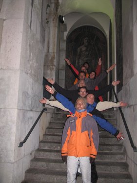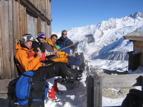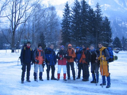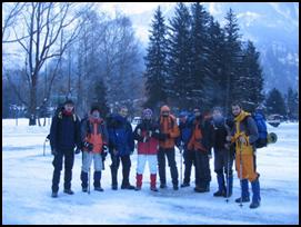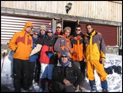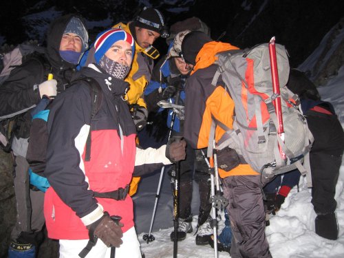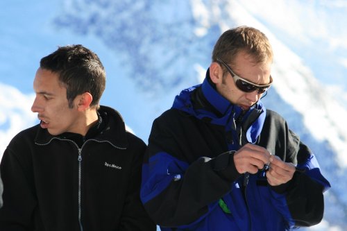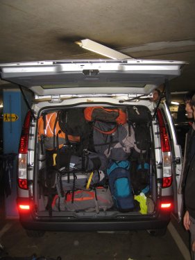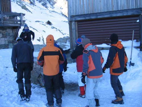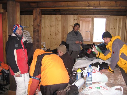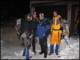 vuelo directo al corazón de los Alpes. Debido al cansancio del finde anterior, el equipo (incluido yo) tenía pocas ganas e ilusión en esta nueva empresa. Por no haber, no había ni ganas de hablar del tema…. Así que los preparativos del viaje se caracterizaron por su inexistencia, hasta que el jueves gracias a la fuerza del e-mail se consiguió poner en tensión a los chavales, y en un tiempo record se convirtieron en montañeros, con su piolet , sus crampones y todos los extras a un grupo de putas, yonquis y transexuales.