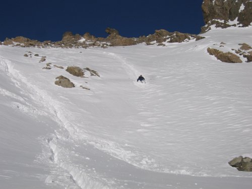 precioso ver nuestra huella (la única) serpenteando por la pendiente a saco