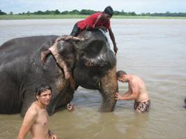 ahí fuimos hacia el río donde los elefantes ya empezaban el baño diario,