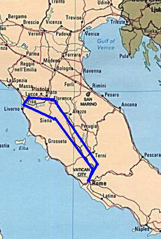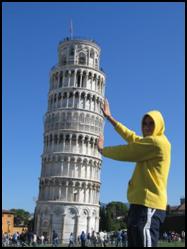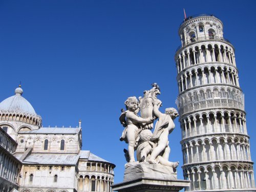 tentación de ir a por oro. DIA 3: Por la mañana nos fuimos de Florencia a Pisa, (85 Km., 1 hora y 10 minutos). Nada mas llegar, como no directos a ver la torre de Pisa, joder… impresiona verla tan torcida, parece que no esta tanto en las fotos, pero cuando estas ahí, debajo de ella, no entiendes como no se cae; también nos encanto la catedral de pisa y sus detallitos como la estatua de rumulo y remo.