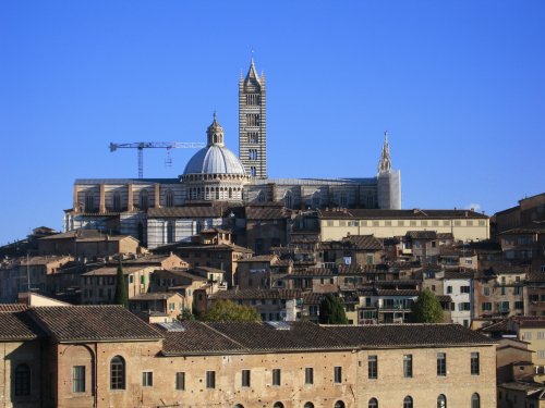 Cogimos el coche y fuimos de Pisa a Siena, (147 Km., 2 horas), que a la vez fue mi sitio preferido de todo el viaje. Era como un cuento, todo medieval, todas las calles de piedra, la plaza del campo donde se celebra la gran fiesta del Palio, donde nuestro querido amigo Bernon se escapo un año en pleno inter-rail, las callejuelas y sus colores y sombras, ni un solo coche…. en definitiva… perfecta…