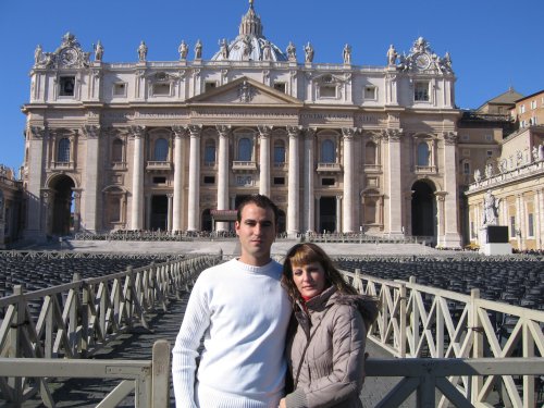 DIA 4: Visita a Ciudad del Vaticano, después de esperar colas kilométricas de mas de una hora… por fin nos dejaban entrar…. Tuvimos que pasar mil controles… como si después del primero nos hubiera salido TNT en los bolsillos por casualidad o por obra divina diría yo ejejeje y llegamos por fin a la Basílica de San Pedro, era un lugar enorme, que inmenso, Chema ya había estado y me contó que era impresionante, que parecía la escena de moria, un patio con columnas que no finalizaba… la catedral mas grande del mundo!!!!! Se nos pusieron los pelos de punta al entrar. Después de salir del Vaticano, y una vez mas sin ver la capilla sixtina, por la enorme cola que había, nos dispusimos a dar una vuelta por los jardines cercanos… visitamos el Castillo Sant'Angelo, y siguiendo Tiber arriba, llegamos a la plaza de España para sentarnos en lo alto de las escaleras a tomar el solecito… estaba petado de gente... pero molaba mucho….