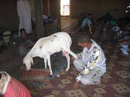 Había mucha gente descansando del sol. Entre los comensales paseaban cabras