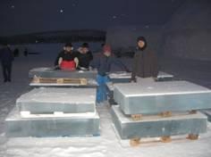 observando como moldeaban y acoplaban los bloques de hielo, incluso