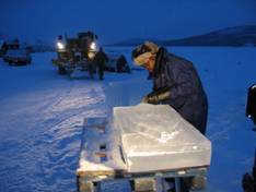 transportan, trozos inmensos de hielo desde el cercano Río Torne que