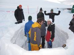 la cuña oportuna creando anillos y otro grupo los juntaba con el hielo que