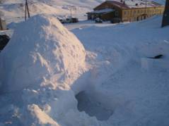 nuestro iglú y fuimos bajando hacia el centro del pueblo. Otro día sin poder