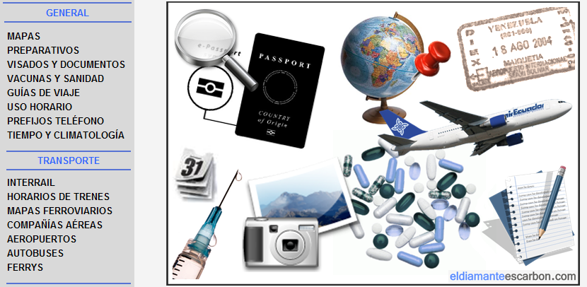Vacunas y Sanidad Guias de Viaje Uso Horario Prefijos Telefónicos Completísima información del InterRail Horarios de Trenes Visados y Documentos Mapas del Mundo